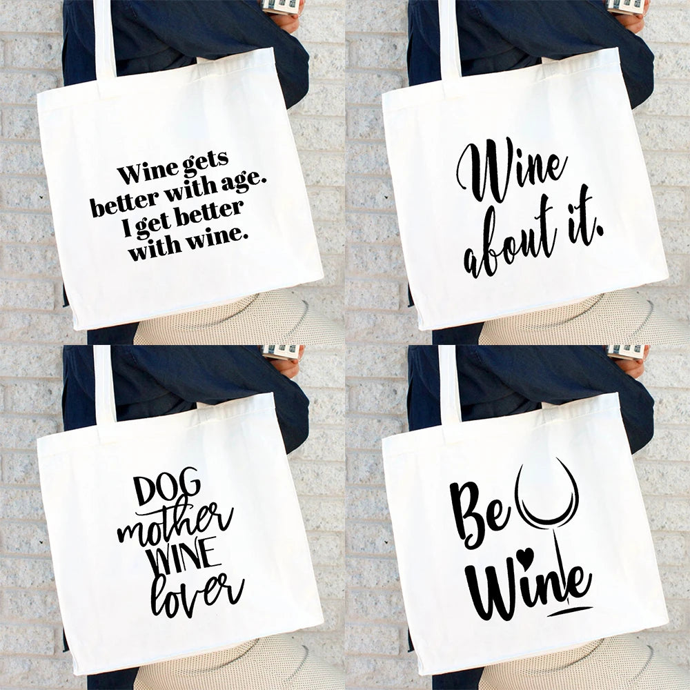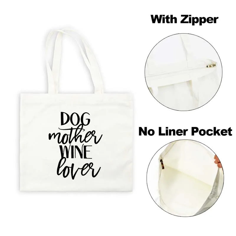 Dog Mother Wine Lover Print T Shirt Women Canvas Bag