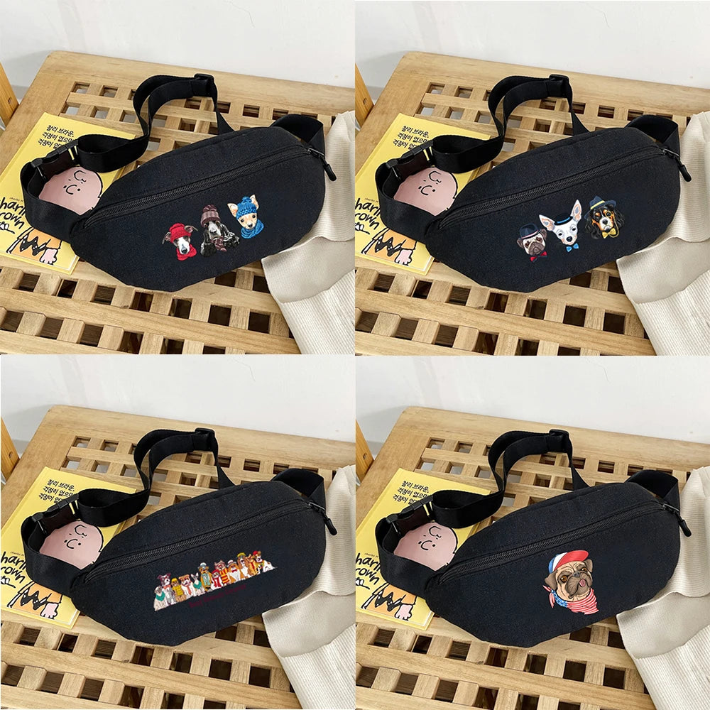 Dog Print Shoulder Chest Bag Waist Bag Mini Handbag Crossbody Belt Organizer