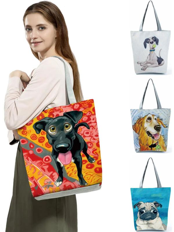 Dog Print Tote Bag Animal Schnauzer Golden Retriever Women Handbag