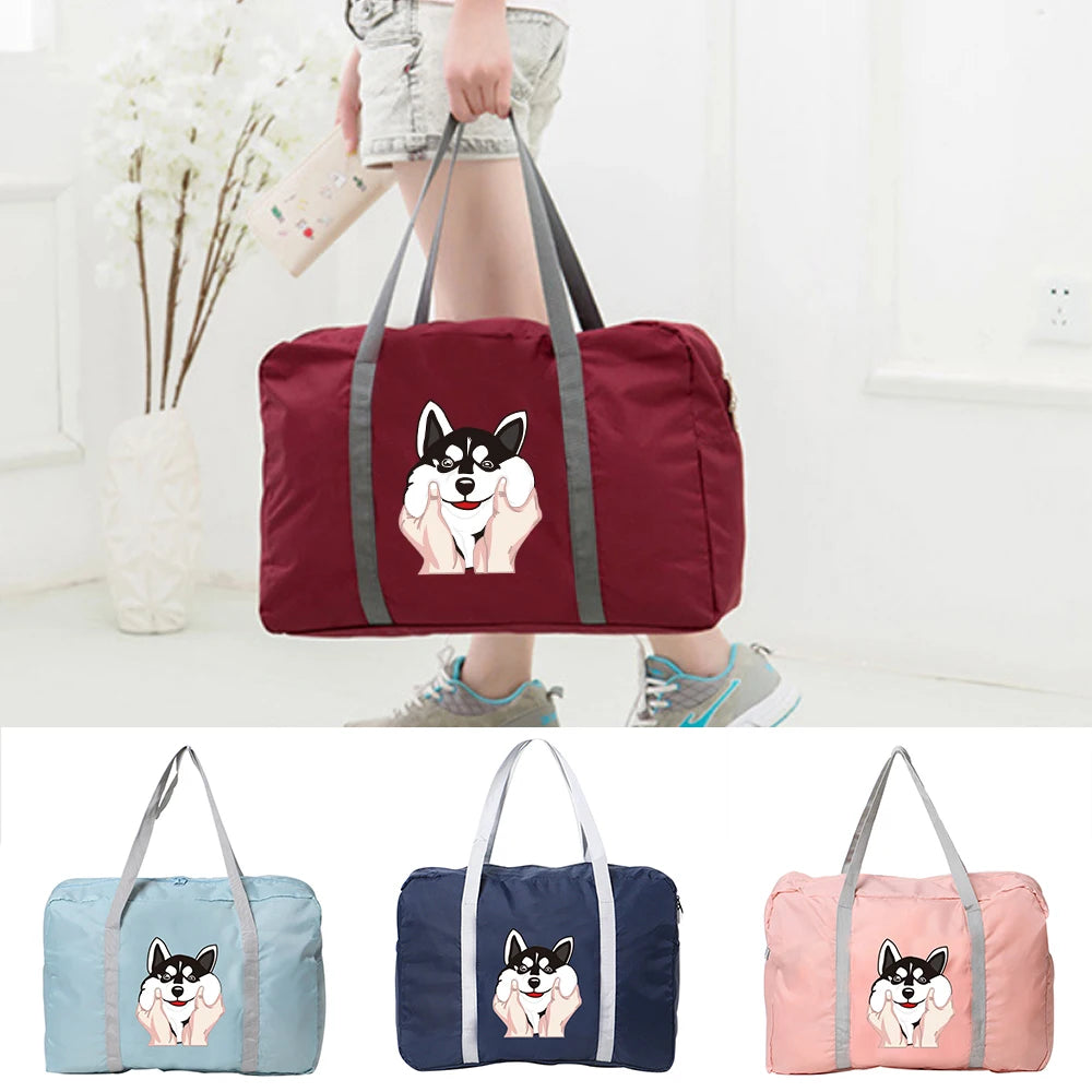 Dog Print Travel Bag Portable Foldable Waterproof Tote Bags
