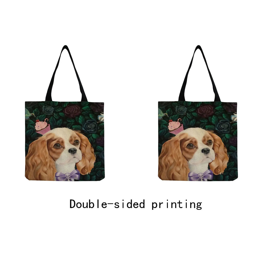 Dog Printed Handbag Foldable Tote Eco Friendly Practical Women Shoulder Bag