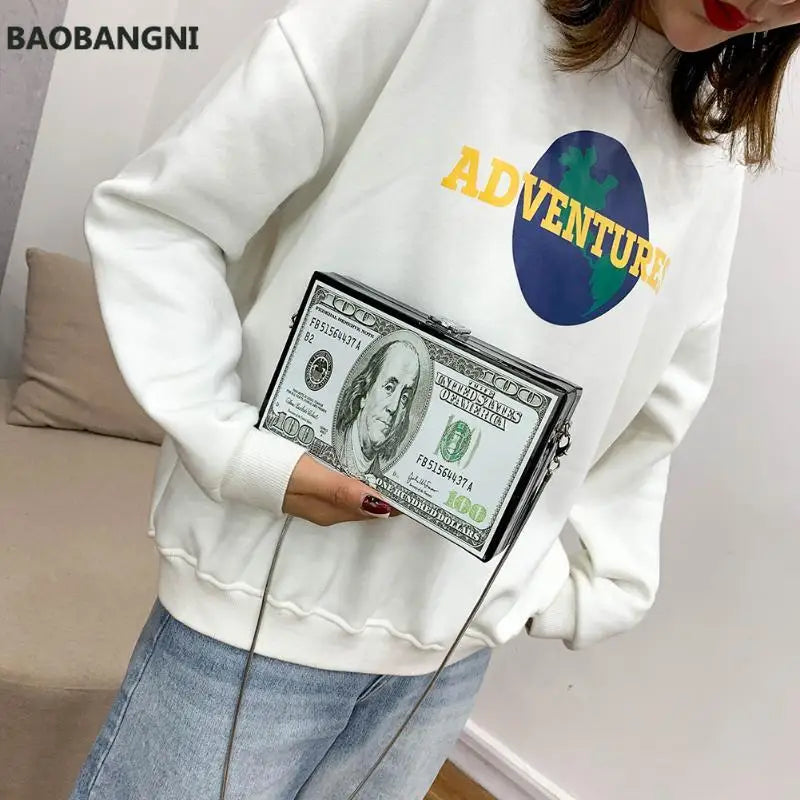 Description:This stylish box bag made of PU leather is perfect for daily use. It can be used as a clutch bag, shoulder bag, or crossbody messenger bag.Features: Fashionable dollar pattern design Made of high-quality PU leather Versatile use as clutch, shoulder, or crossbody bag Ideal for daily use and special...
