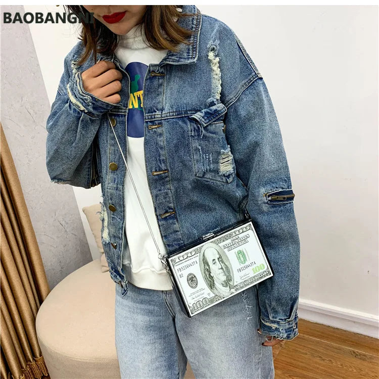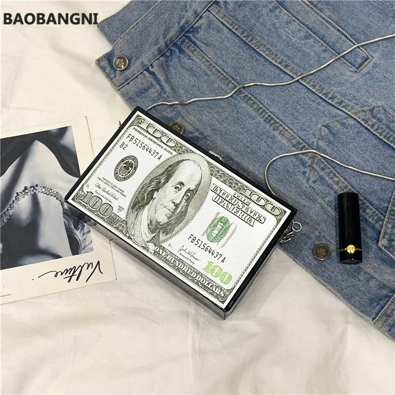 Dollar Pattern Box Bag Pu Leather Women Daily Clutch Bag