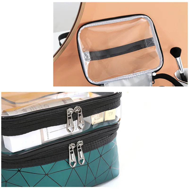 Double Layer Cosmetic Bag PU Makeup Organizer Waterproof Toiletry Storage