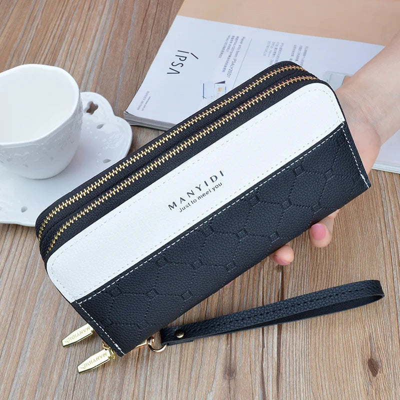 Double Zipper Hand Wallet Women Wallet Long Contrast Double Layer Wallet