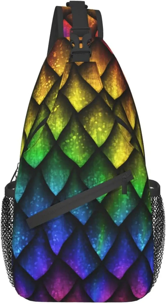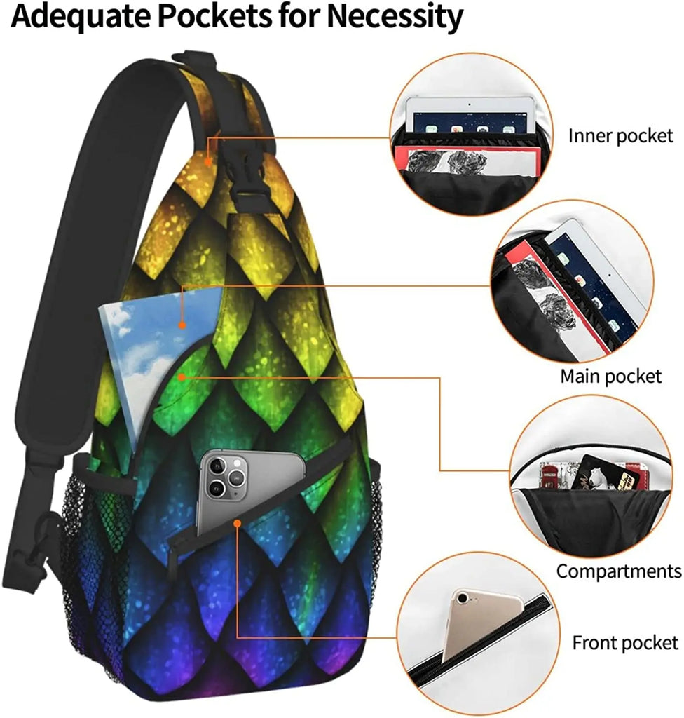 This stylish sling bag features a dragon scale animal skin pattern, perfect for both women and men. It can be worn as a crossbody shoulder bag or a chest bag. Ideal for outdoor activities and casual wear.