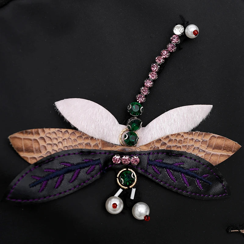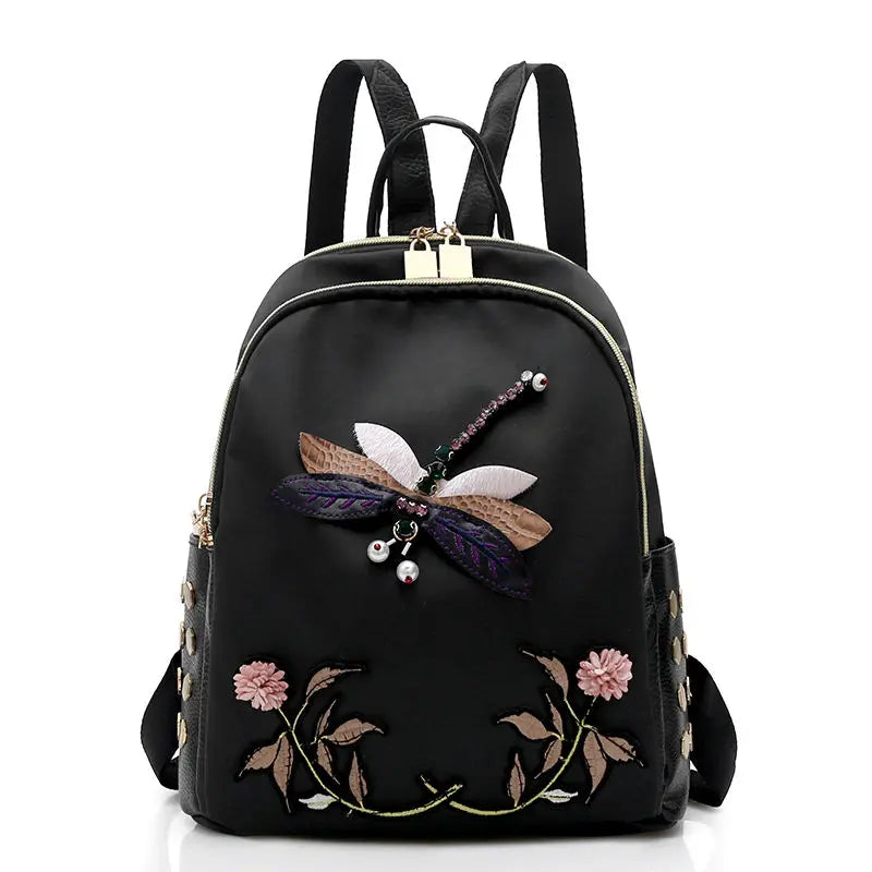 Dragonfly Flower Embroidered Backpack Waterproof School Bag