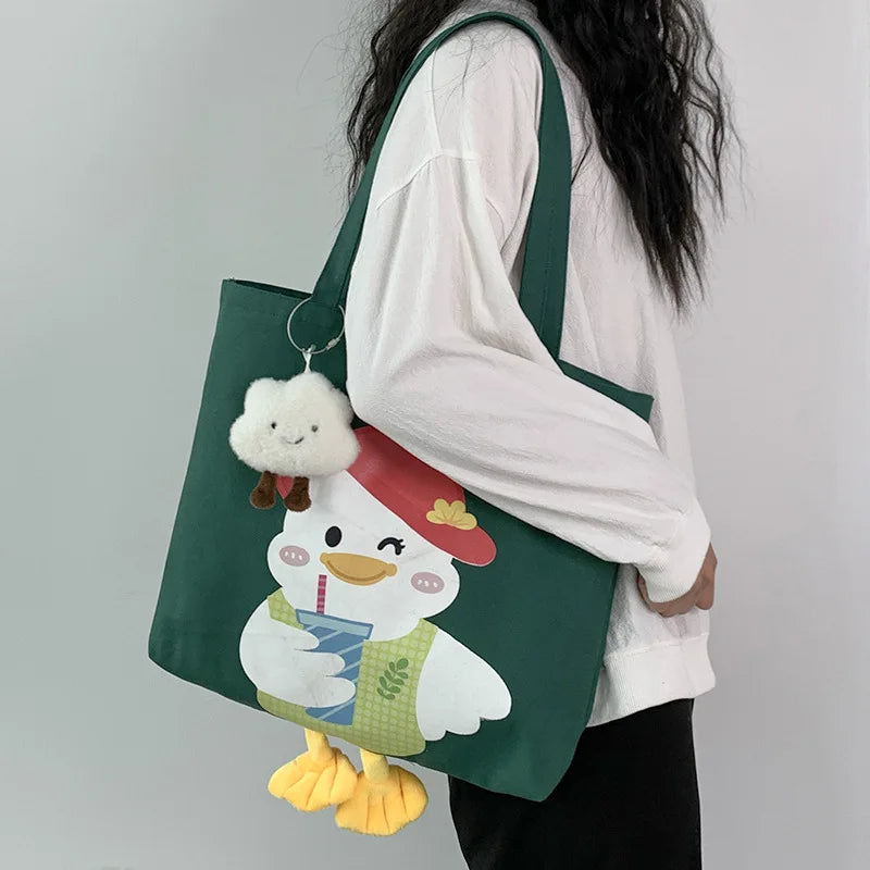 Duck Canvas Women's Shoulder Bag Large Capacity Shopper Handbag