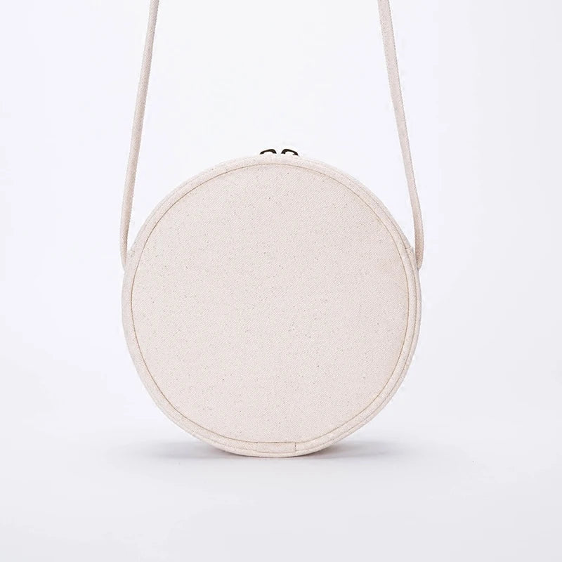 Eco Cotton Canvas Mini Bag Women Shoulder Bags Round Casual Daily Cross Body
