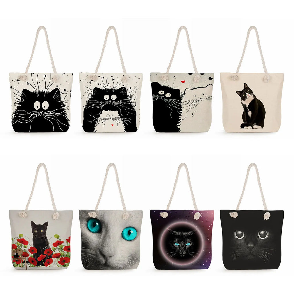 Stay stylish and environmentally conscious with this large capacity tote featuring a creative cat print. Perfect for shopping or everyday use.