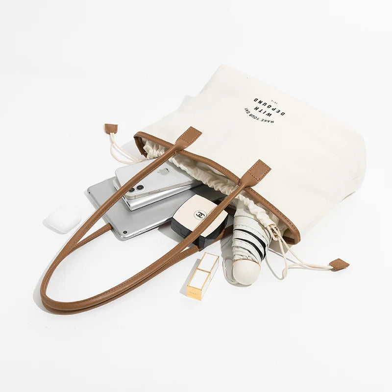 This eco-friendly tote is perfect for women on the go. Made from washable canvas, it is a sustainable choice for carrying your essentials. The top handle adds a stylish touch to the casual design.