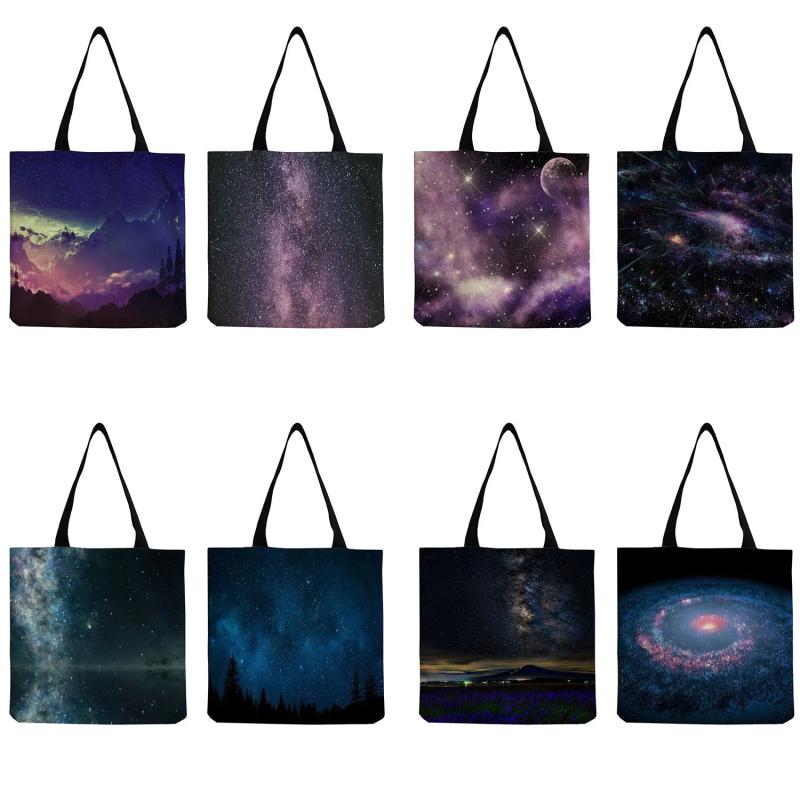 Eco Reusable Shopper Bag Portable Handbag Starry Print Women's Shoulder Bag
