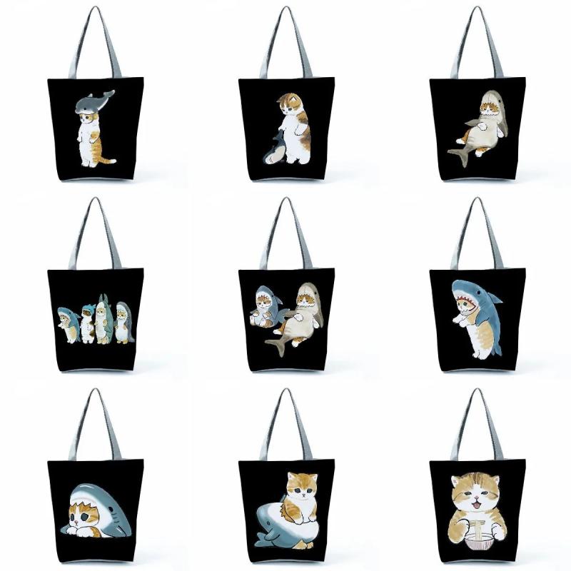 Eco Reusable Travel Handbag Shark Suit Cat Print Shoulder Bag