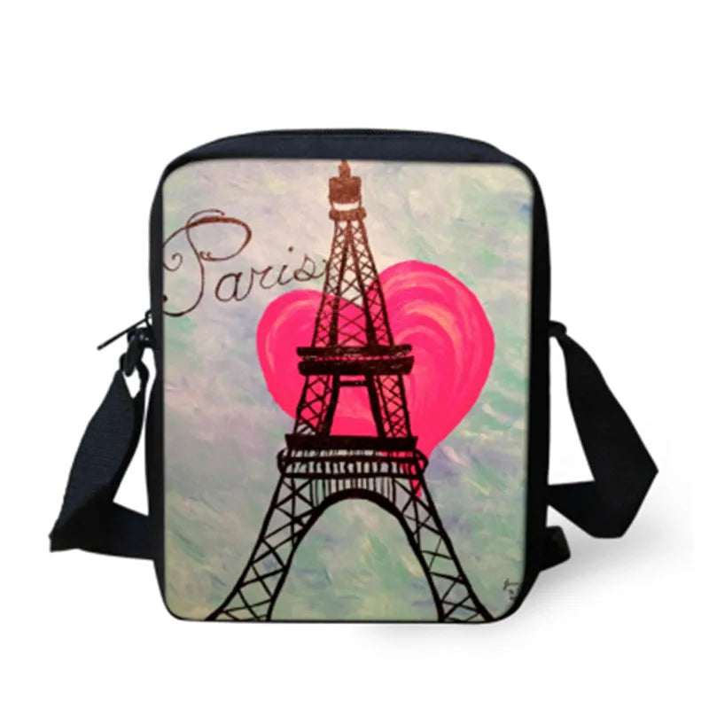 Eiffel Tower Print Messenger Bag Girls Shoulder Travel Handbag