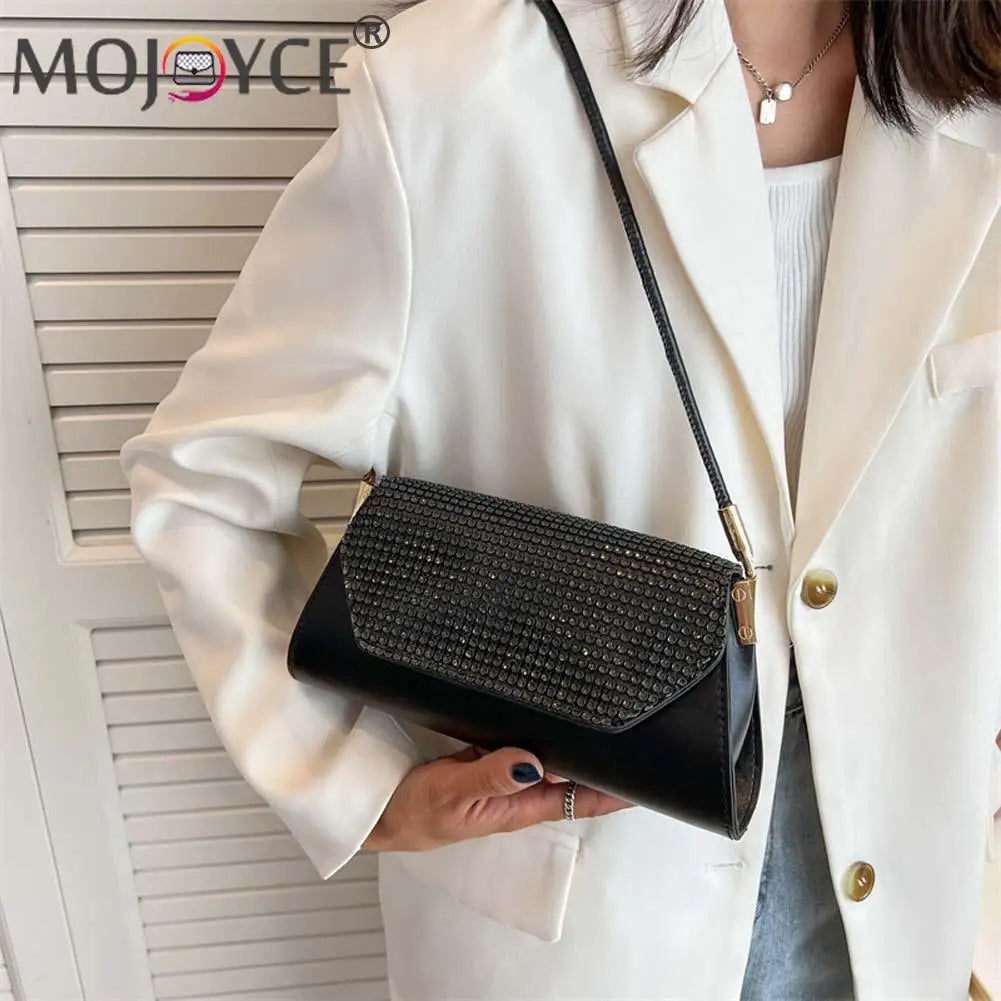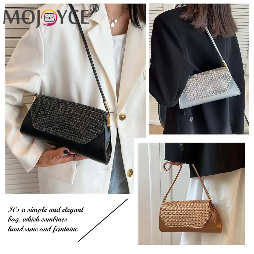 Add a touch of glamour to your evening ensemble with this stylish rhinestones clutch bag. Perfect for dinner parties or special occasions, this underarm handbag is crafted from high-quality leather.