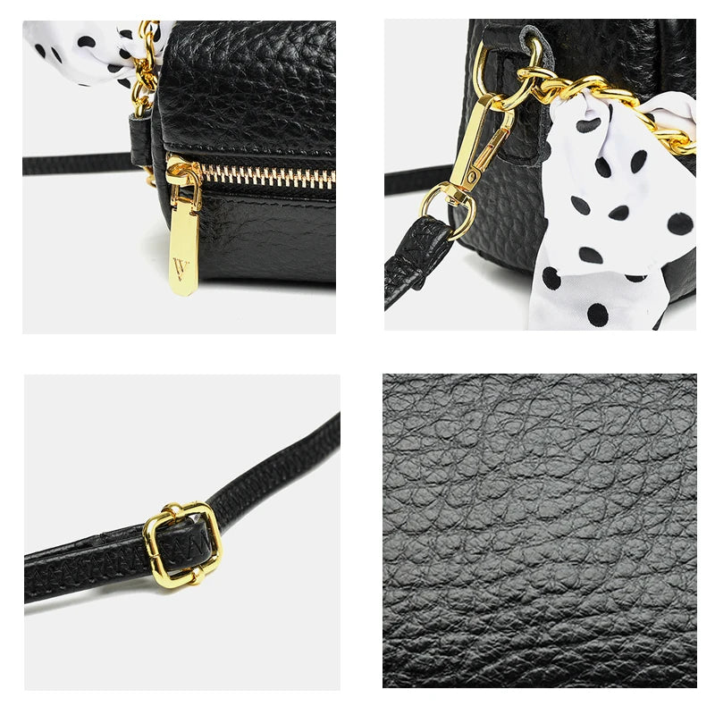This women's shoulder bag features a stylish elephant pattern design made of first layer leather. It is perfect for daily use and offers a chic touch to your outfit.
