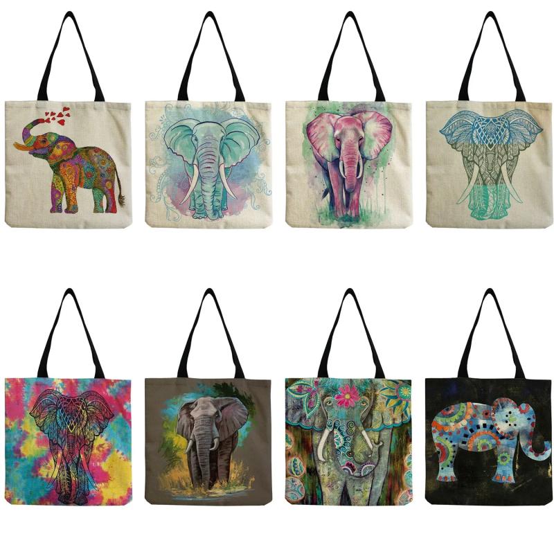 This stylish tote bag features a captivating elephant painting design, perfect for art lovers. It is foldable and ideal for shopping or everyday use, with a spacious storage capacity.