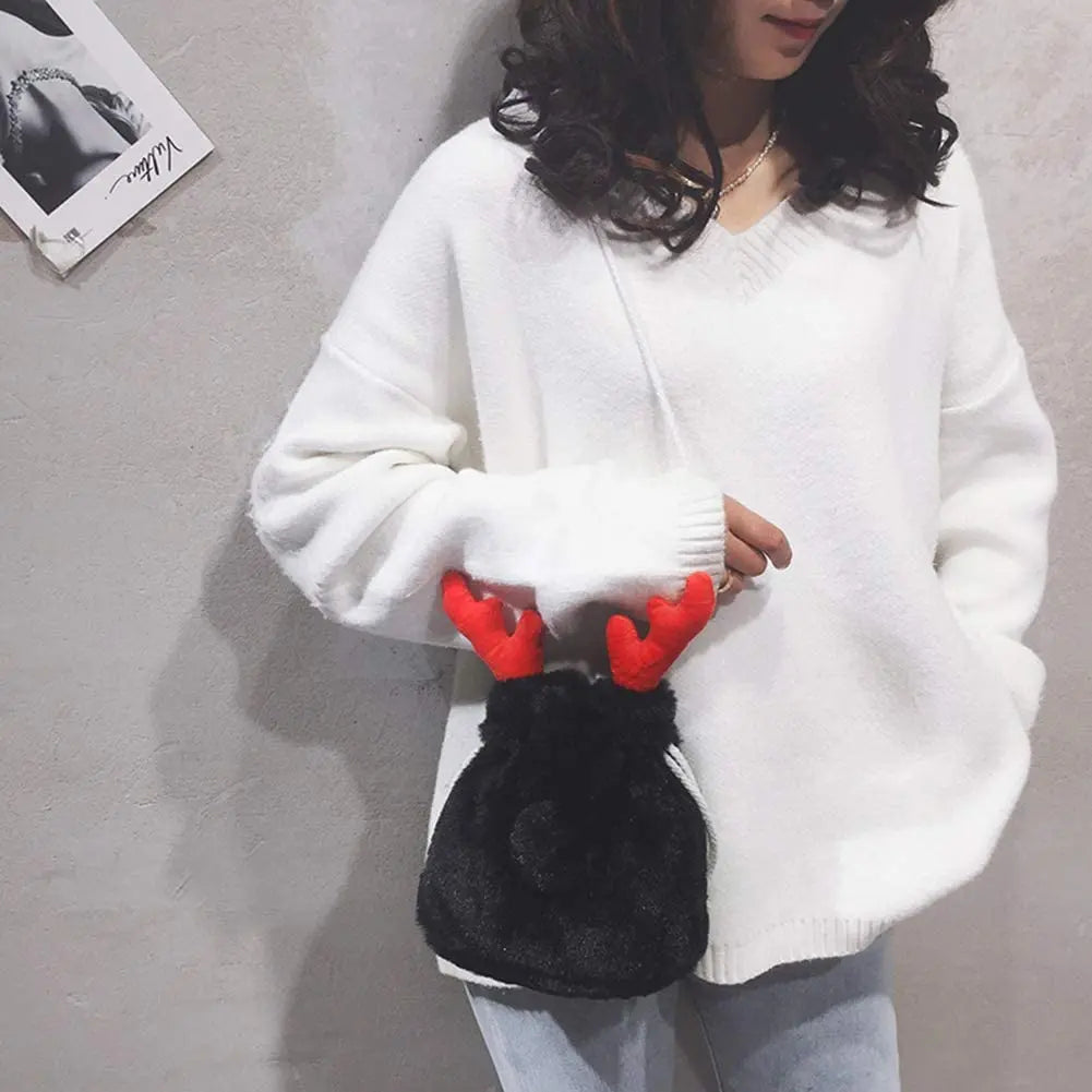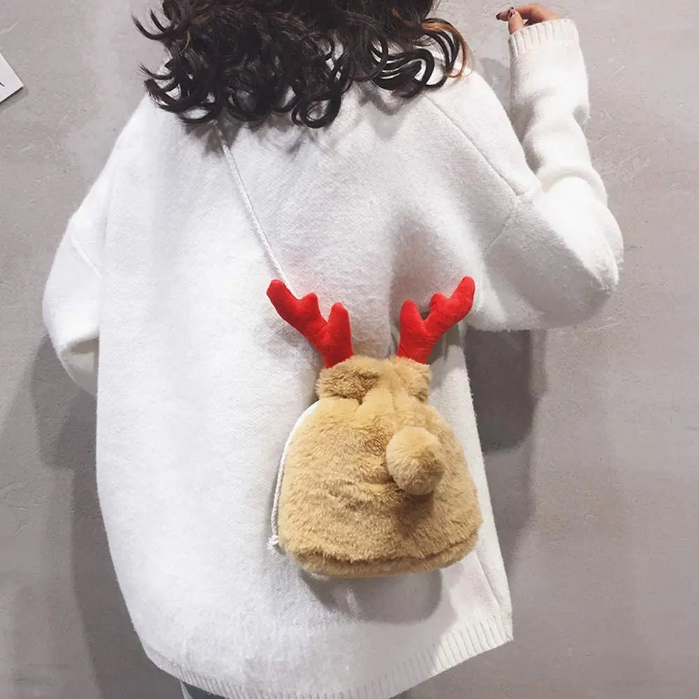 Elk Shoulder Bag Lightweight Cartoon Wild Drawstring Plush Crossbody Pack