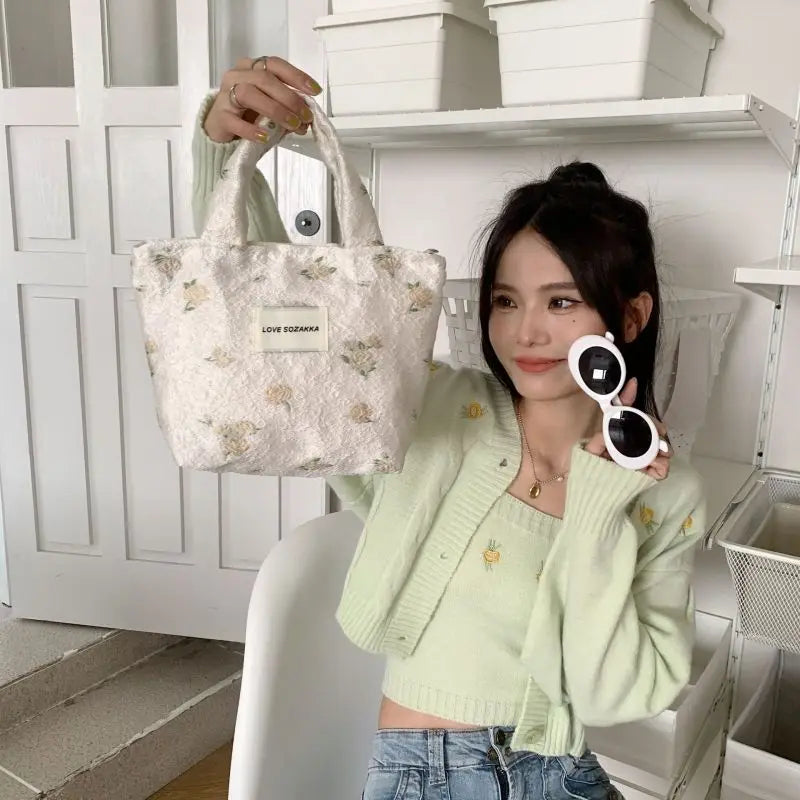 Embossed Flower Handbags for Women Portable Canvas Storage Bags