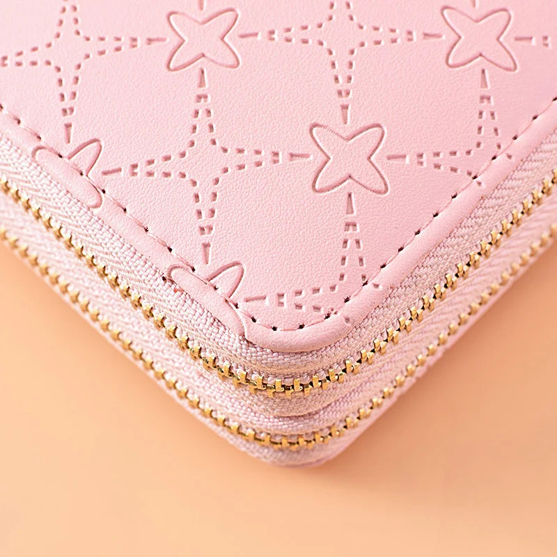 Embossed Long Wallet Women's Hand Bag Double Zipper Mobile Phone Bag