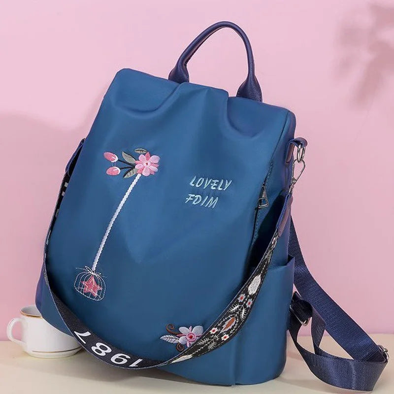 Embroidered Backpack Women Small Fresh Oxford Cloth Backpack Anti-Theft