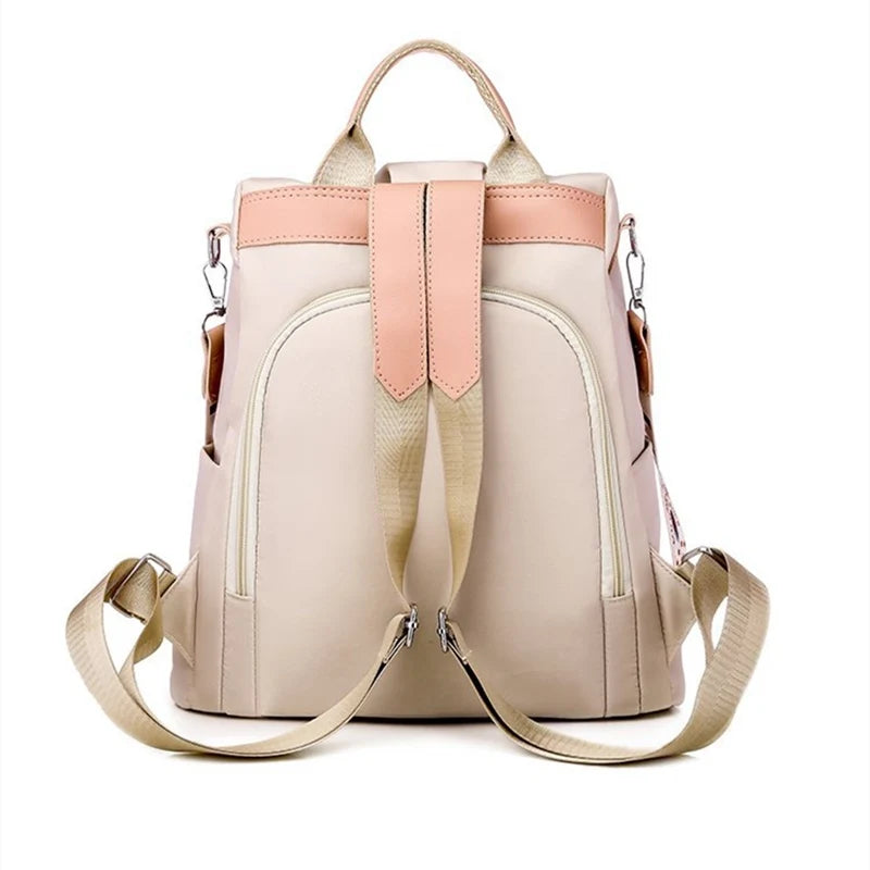 This small fresh Oxford cloth backpack is perfect for women. It features an anti-theft design, large capacity, and is perfect for leisure and school use.