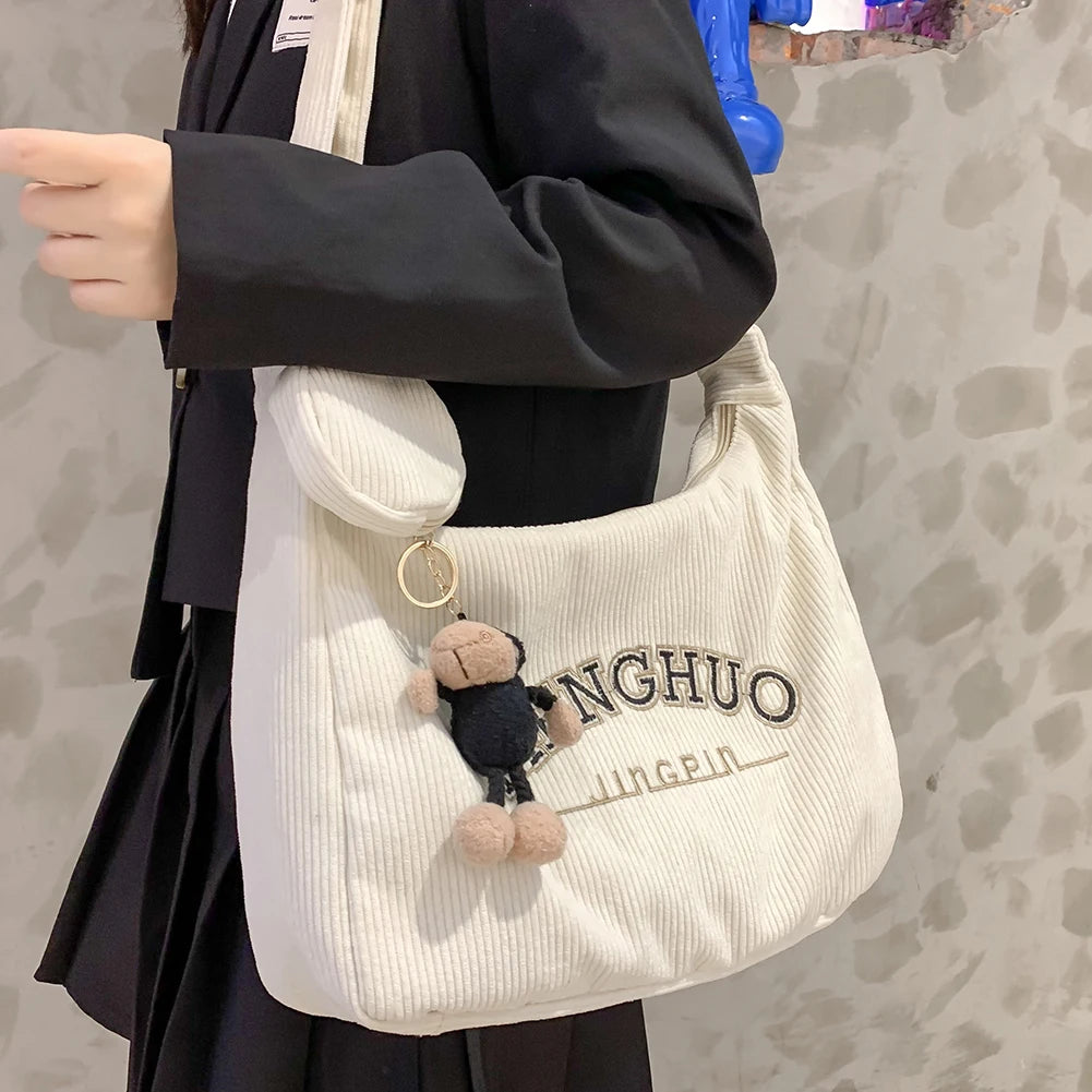 This cute and practical canvas clutch purse features an embroidered bear design. It is perfect for carrying your essentials and can be used as a lunch bento bag or shopper. Ideal for everyday use and a great gift for women.