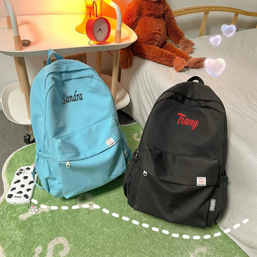 Embroidered Canvas Backpack Lightweight Waterproof Travel Bag