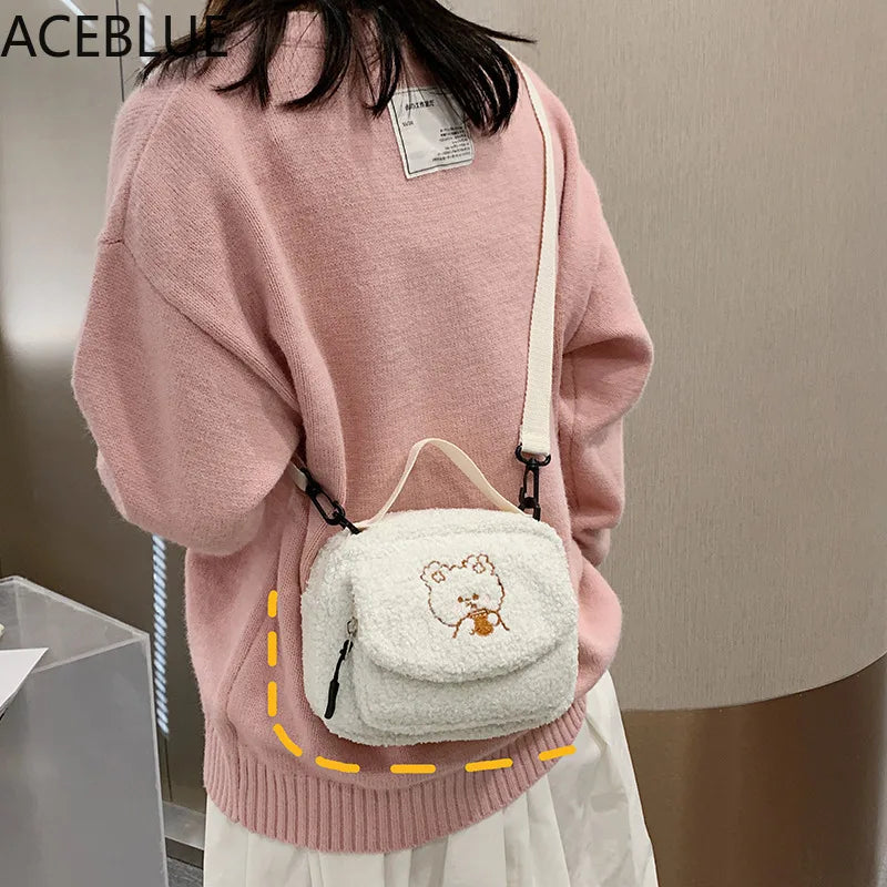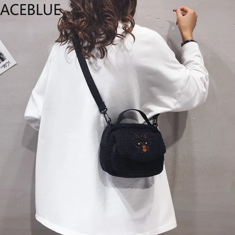 Embroidered Canvas Crossbody Bag for Women Small Plush Shoulder Purse