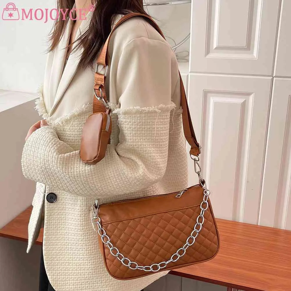 Stay stylish on your weekend getaway with this embroidered chain shoulder bag featuring a matching purse. Crafted from durable PU leather, it's the perfect accessory for a casual vacation look.