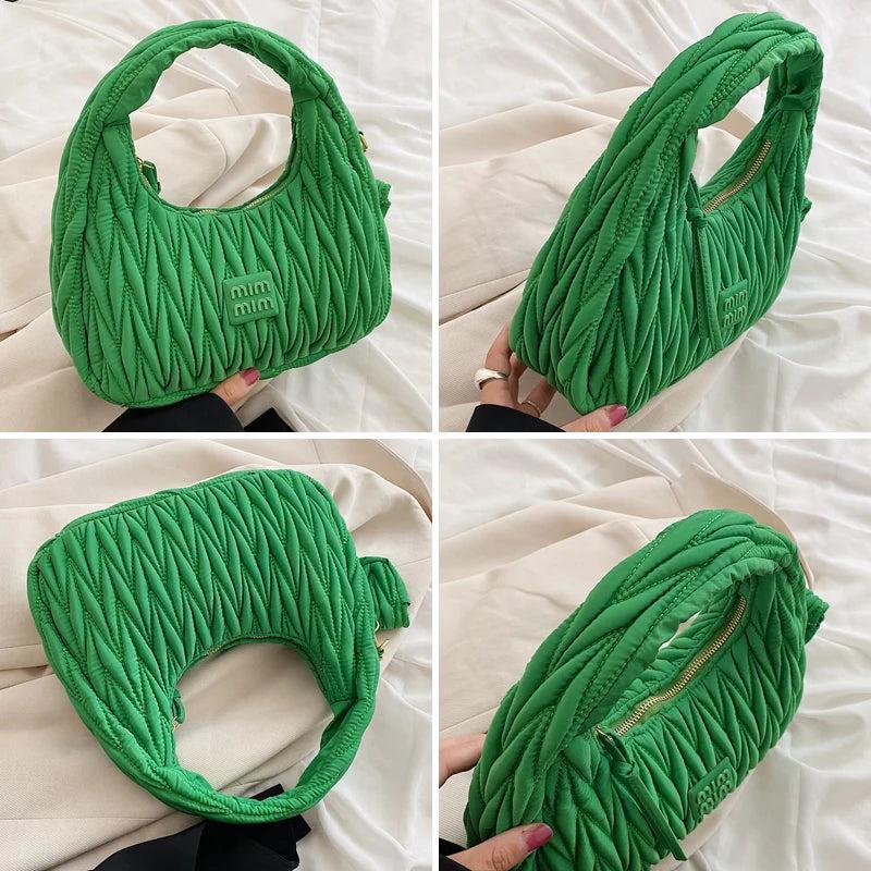 Description:Elevate your style with this pleated satchel bag featuring intricate thread embroidery. Perfect for everyday use or special occasions.Features: Pleated satchel bag with embroidered crescent design Crafted from high-quality materials for durability Spacious interior with multiple compartments Adjustable shoulder strap for comfortable wear Stylish and elegant accessory for any outfit...