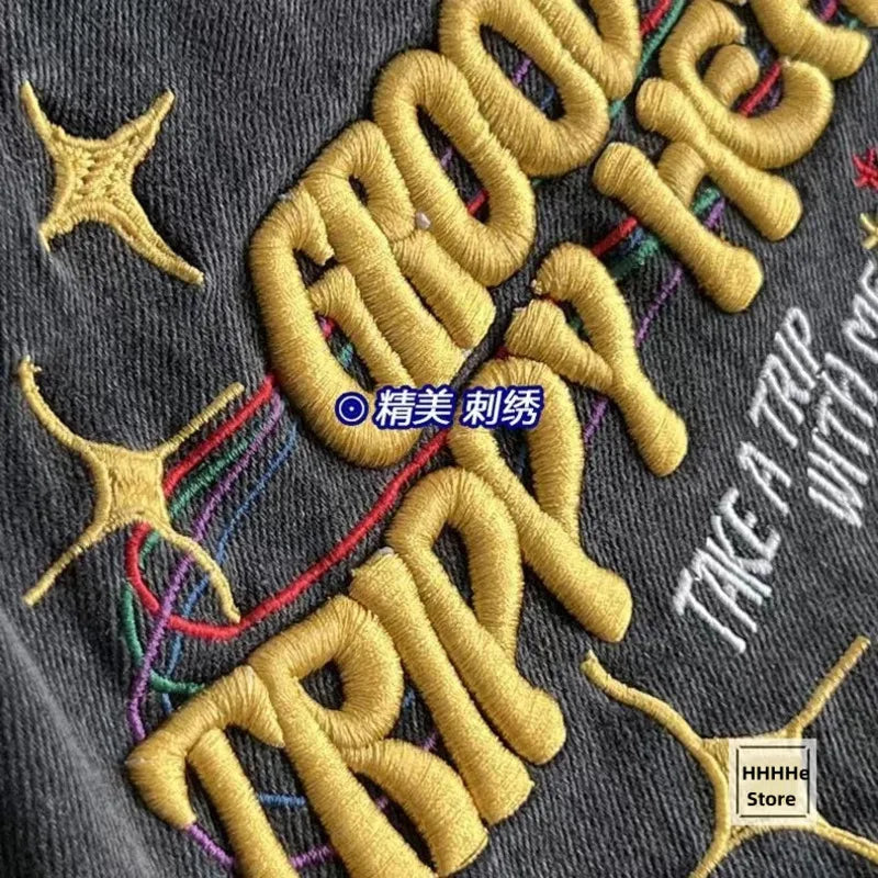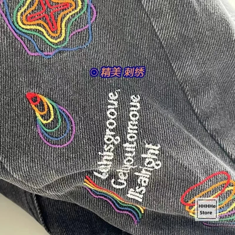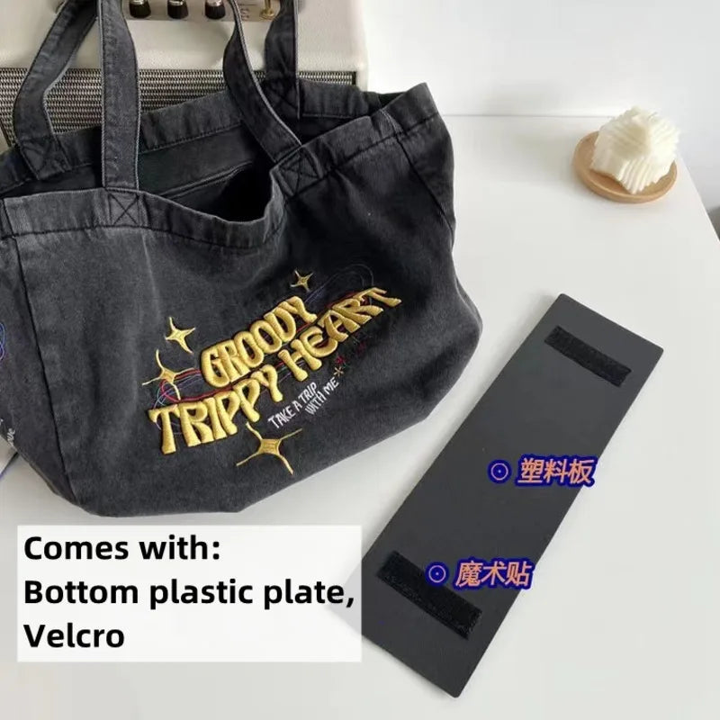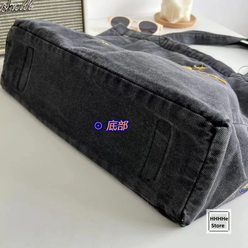 Embroidered Denim Shoulder Bag for Women Large Capacity Travel Tote