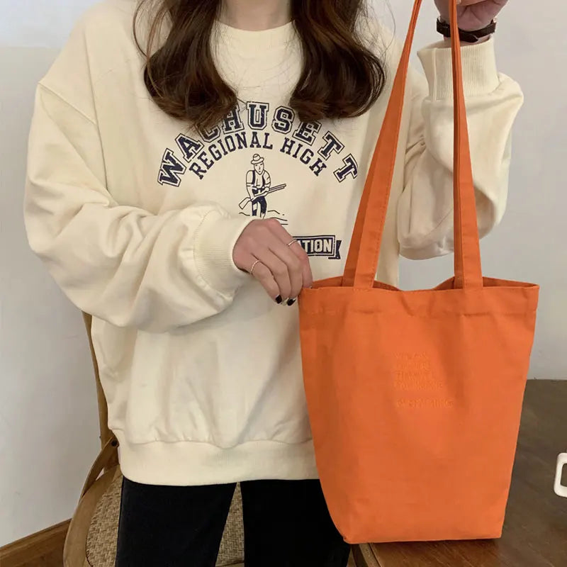 Embroidered Eco Reusable Foldable Shoulder Bag Cotton Tote Pack for Women