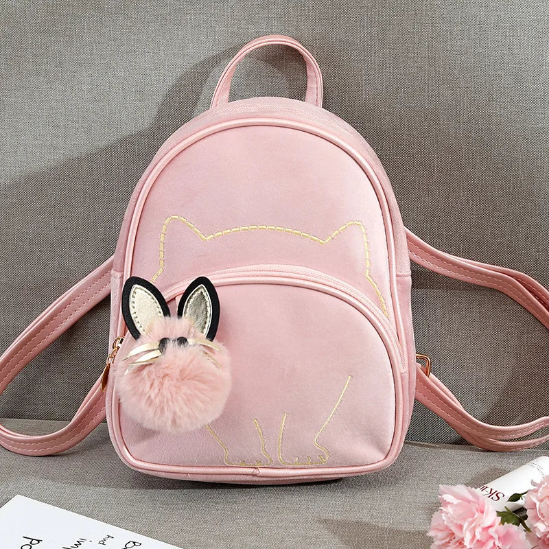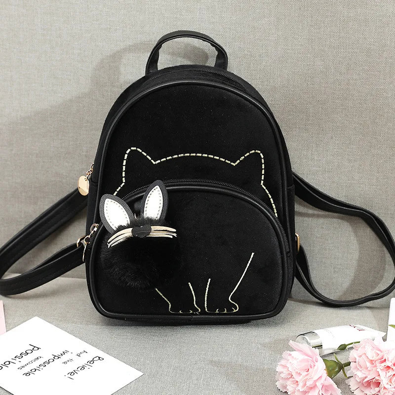 Embroidered Flannel Backpack for Women Girls Schoolbag