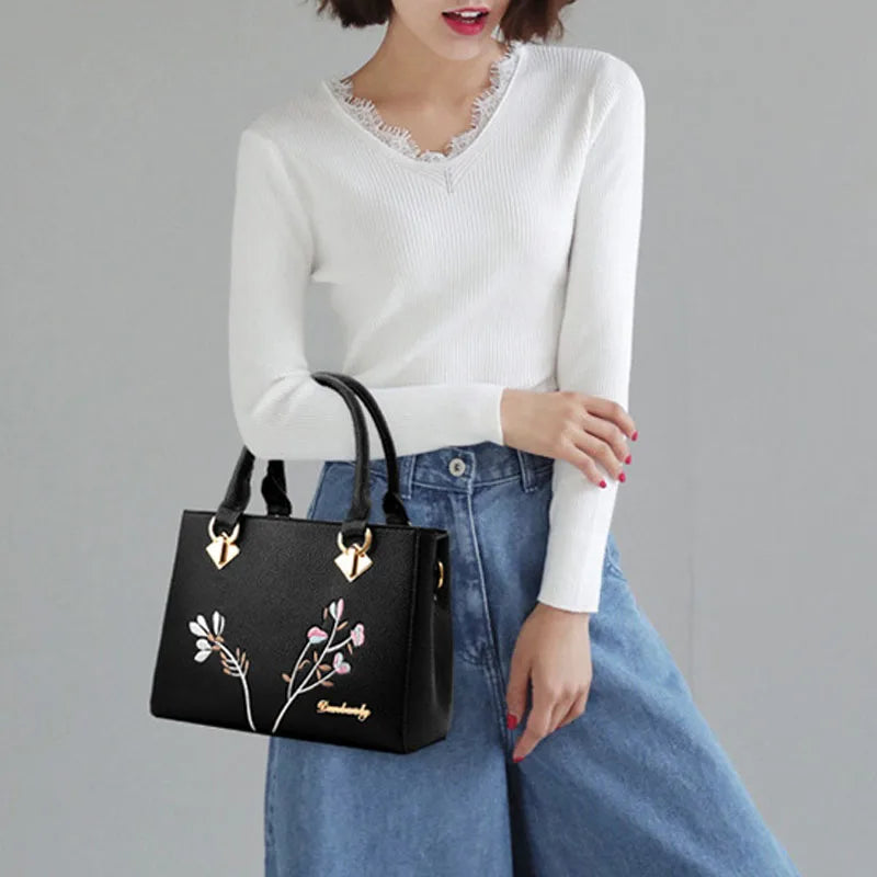 This women's handbag is made of high-quality PU leather with a beautiful flower embroidered design. It can be worn as a single shoulder or crossbody bag.