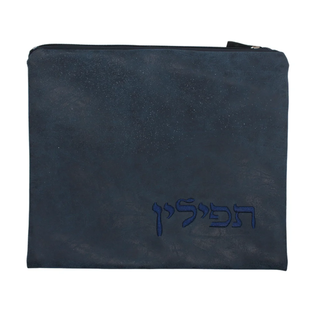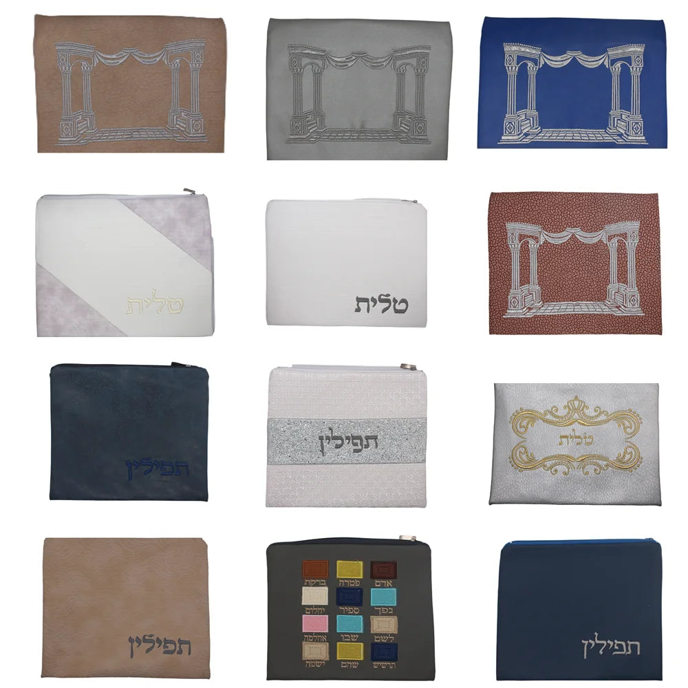 Embroidered Leather Tefillin Bag For Tallit Shawl Judaica