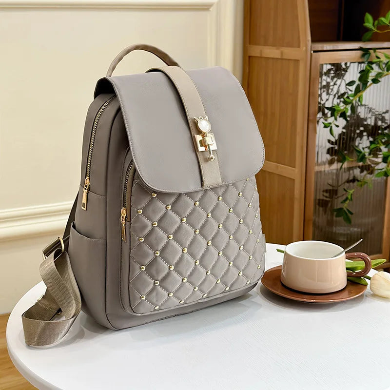 This backpack features diamond embroidery and rivet design, perfect for college students with a fresh and sweet style.