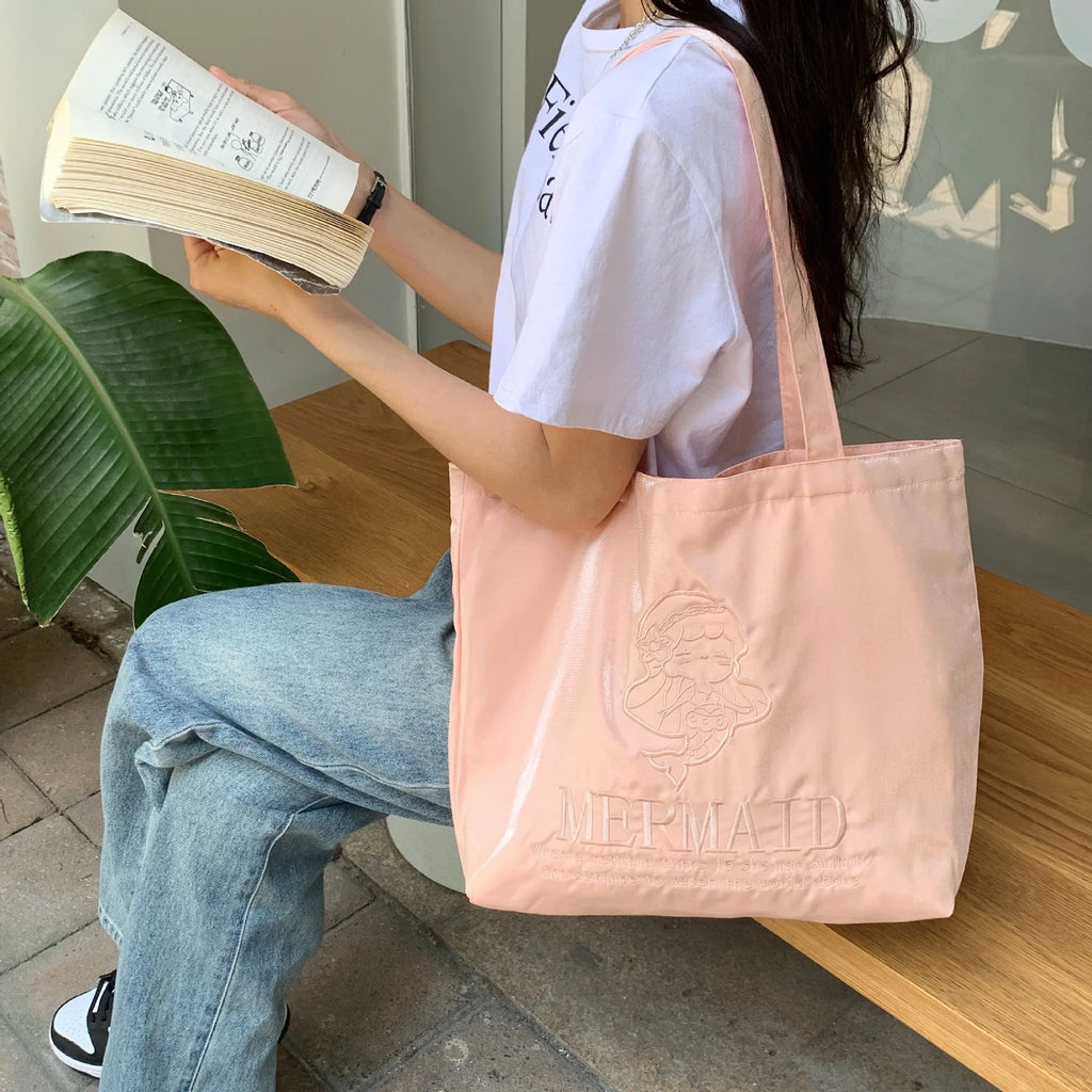Embroidery Casual Tote Bags for Girls Large Capacity Canvas Shopper Bags