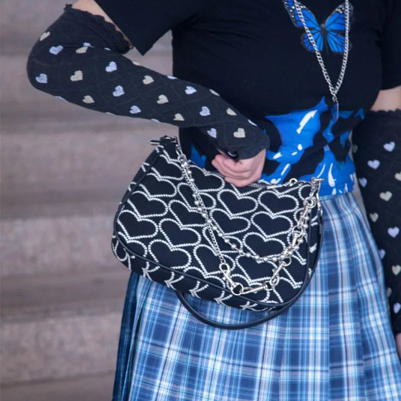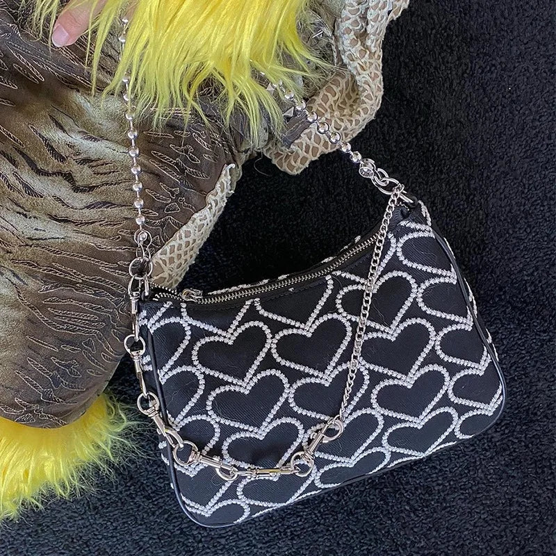 Embroidery Love Heart Shoulder Bag Chain Purse Handbags