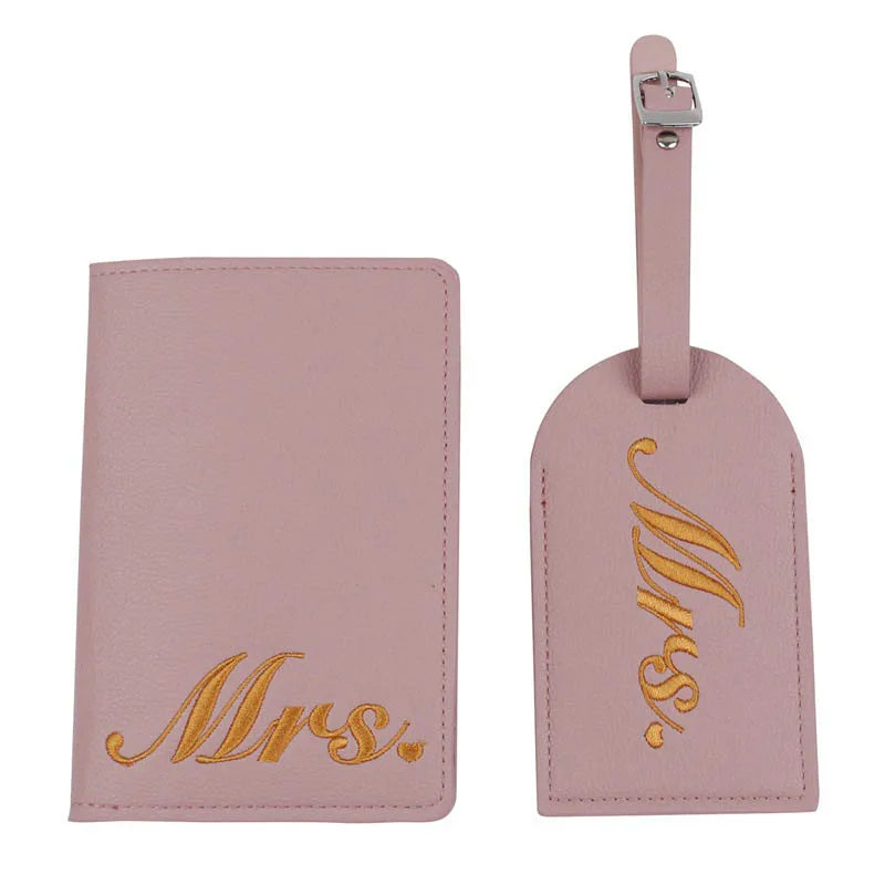 Embroidery Mr Mrs Lover Couple Wedding Passport Cover Case Set