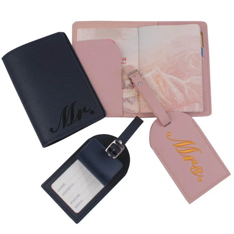 Keep your passports safe and stylish with this set featuring Mr and Mrs embroidery. Perfect for couples to travel together in style.