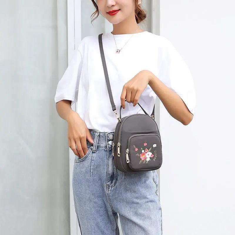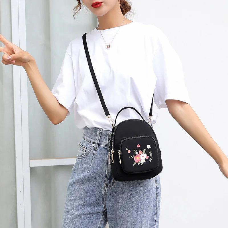 This stylish mini backpack purse is made of high-quality nylon material with intricate embroidery, suitable for women and ladies. It can be used as a shoulder bag or messenger bag, adding a touch of elegance to any outfit.