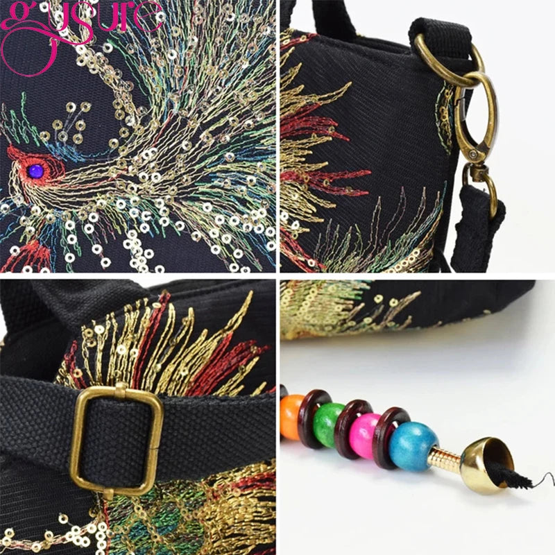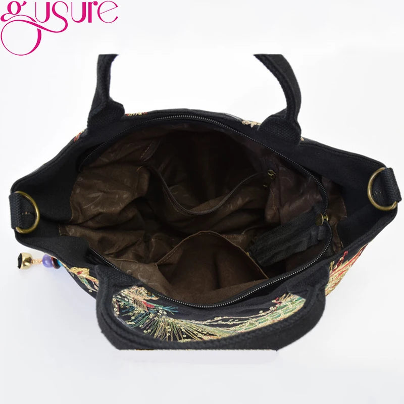 Embroidery Peacock Shoulder Bag Large Capacity Messenger