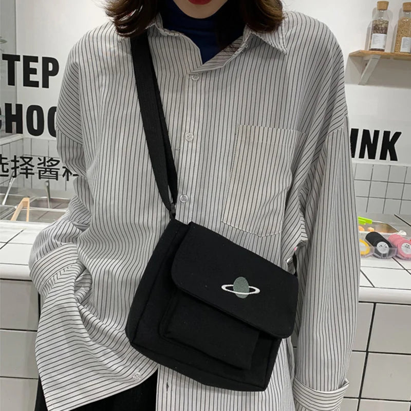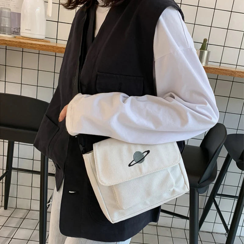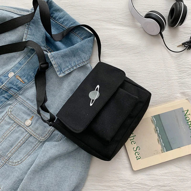 Embroidery Planet Crossbody Bag Canvas Messenger Pouch