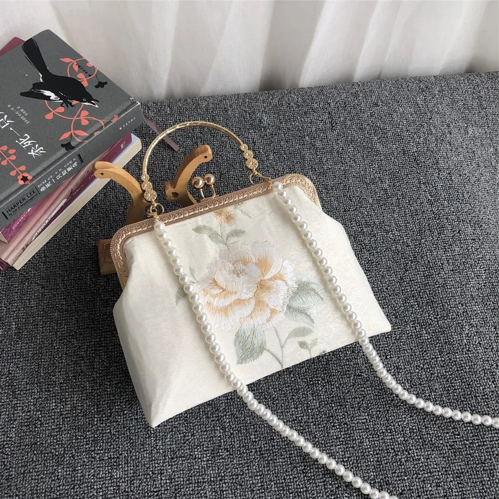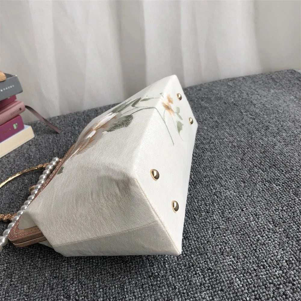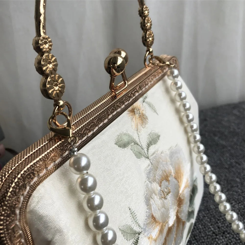 Embroidery Rose Flowers Beads Bag Women Shoulder Tote Handbags