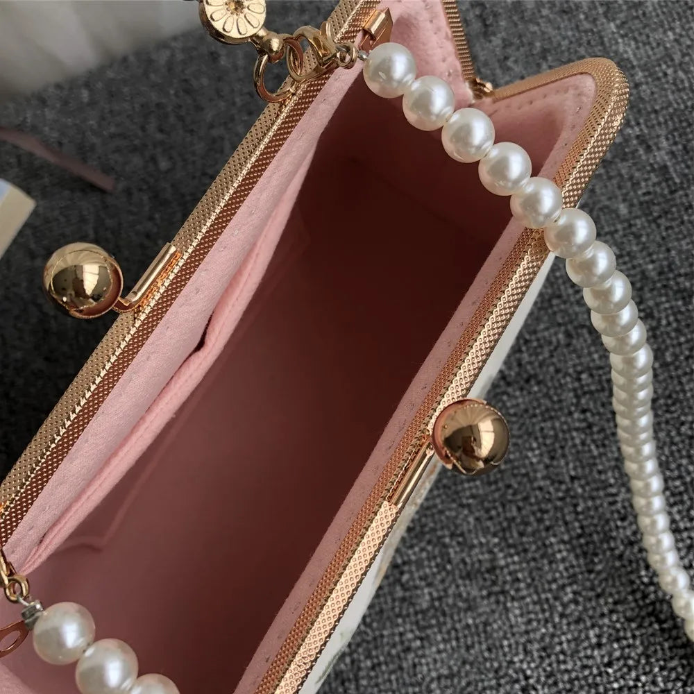 Stylish and elegant handbag featuring embroidery rose flowers and beads, perfect for weddings and special occasions. Includes a fringe shell lock and chain for added flair.