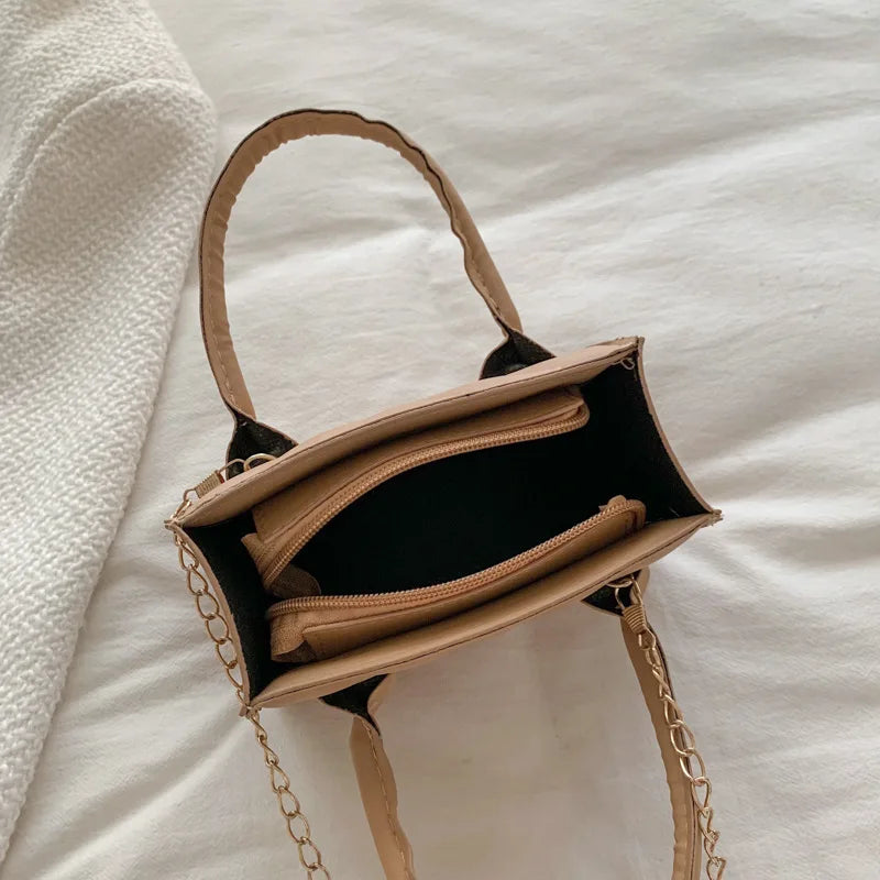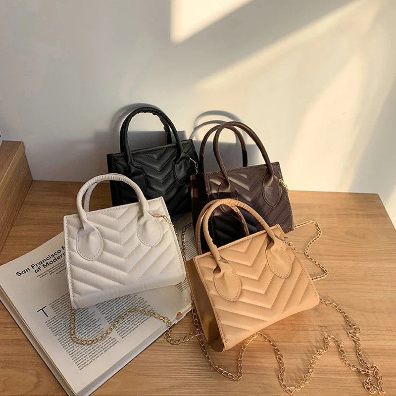 Embroidery Shoulder Bag Chain Strap Crossbody Bags For Women Solid PU Leather