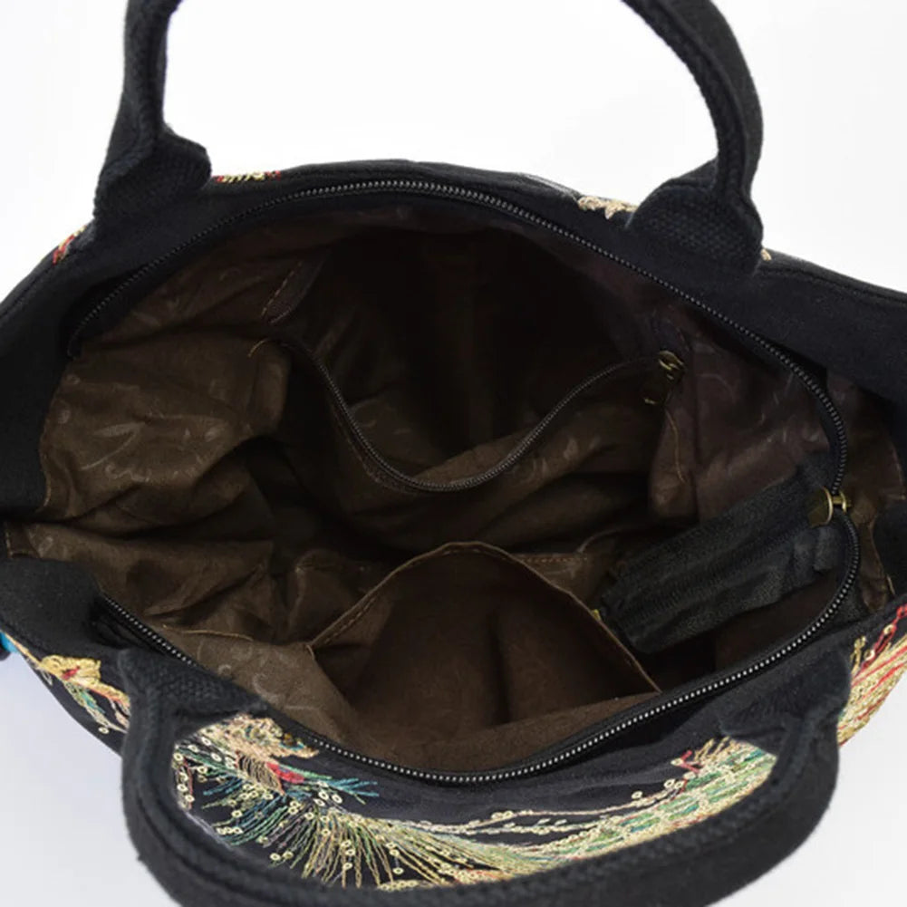 Embroidery Women Canvas Shoulder Bag Ethnic Style Handbag Retro Top-handle Tote