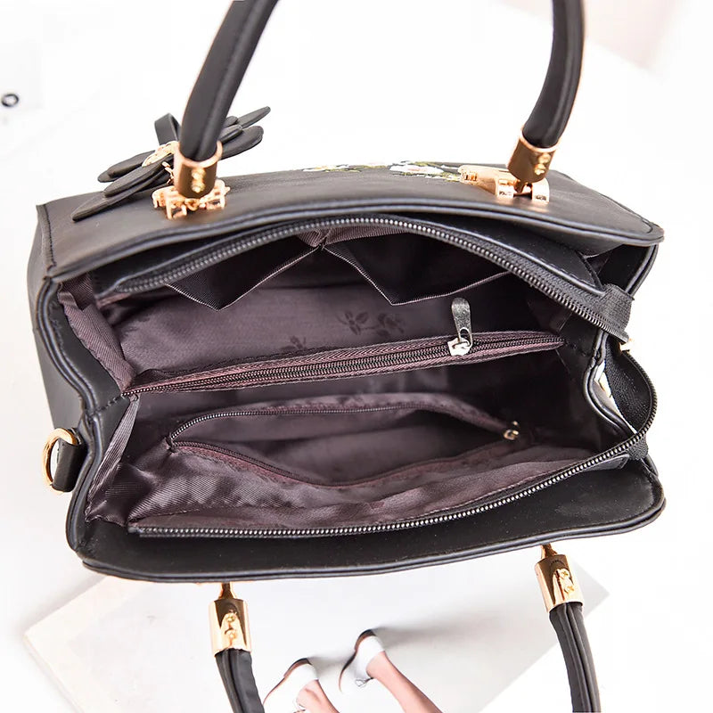 Embroidery Women Handbags Messenger Bag Leather Wild Bags Female Tote