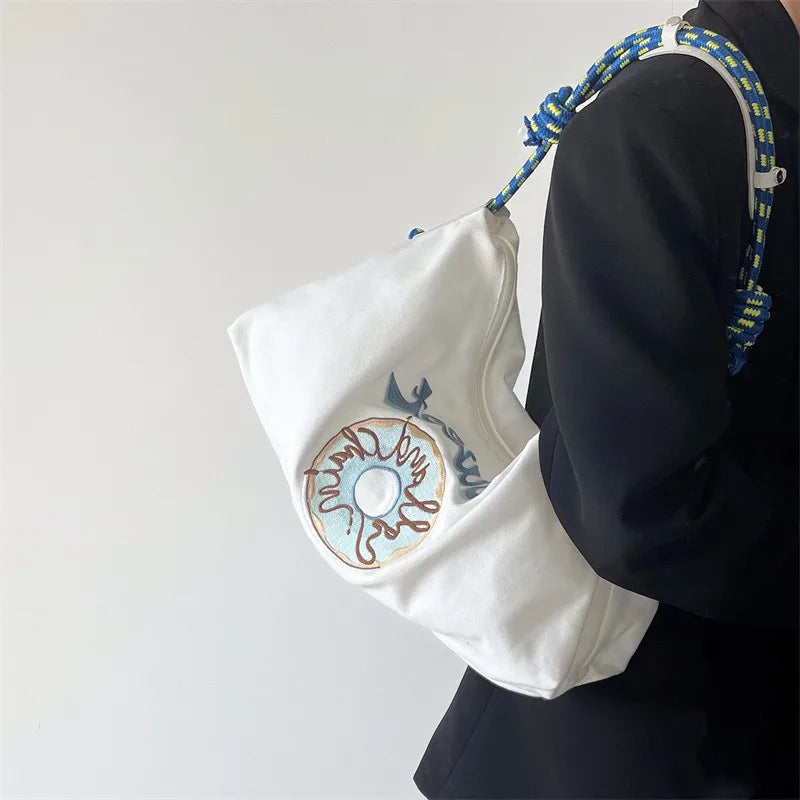 Embroidery Women Shoulder Bags Large Capacity Canvas Female Hobos Crossbody Bag